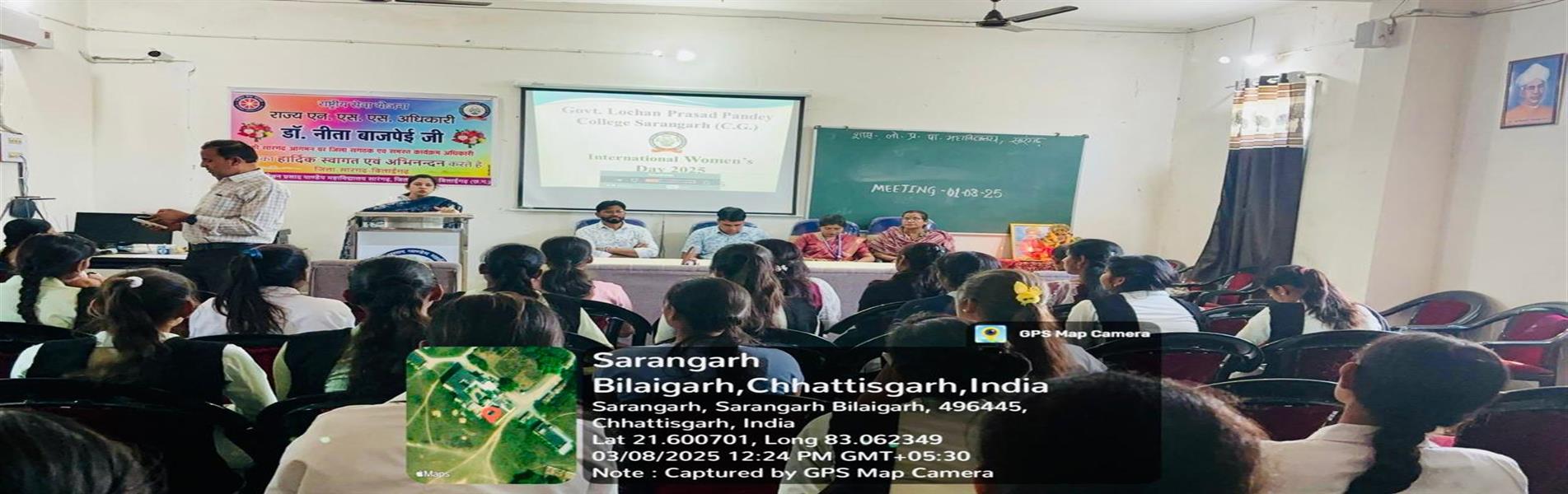 Govt.Lochan Prasad Pandey College Sarangarh was Established in August 10,1983. It is situated in Bilaspur Road in the outskirt of sarangarh .It is affiliated to Atal Bihari Vajpayee University, Bilaspur on June 25,2012. The Govt.Lochan Prasad Pandey College Sarangarh is a prestigeous institution of Raigarh District . It is situated about 52 KM from district Headquater Raigarh . This Institution is affilated to the Shaheed Nandkumar Patel University , Raigarh . It Provides quality education Commmerce along with there P.G. Programme in economics , Sociology and M.com Field study / trainning programme are conducted to improve the practical knowledge of the subjects , ....